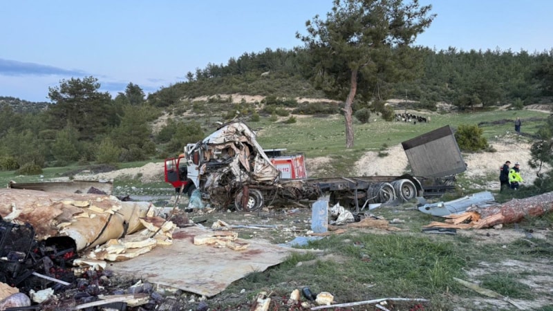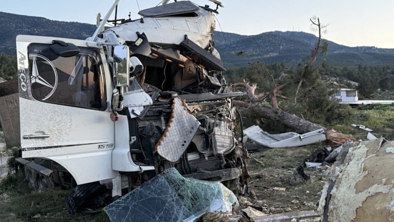 Kazada sürücü H.Ş. hafif yaralanırken, tır kullanılamaz hale geldi.